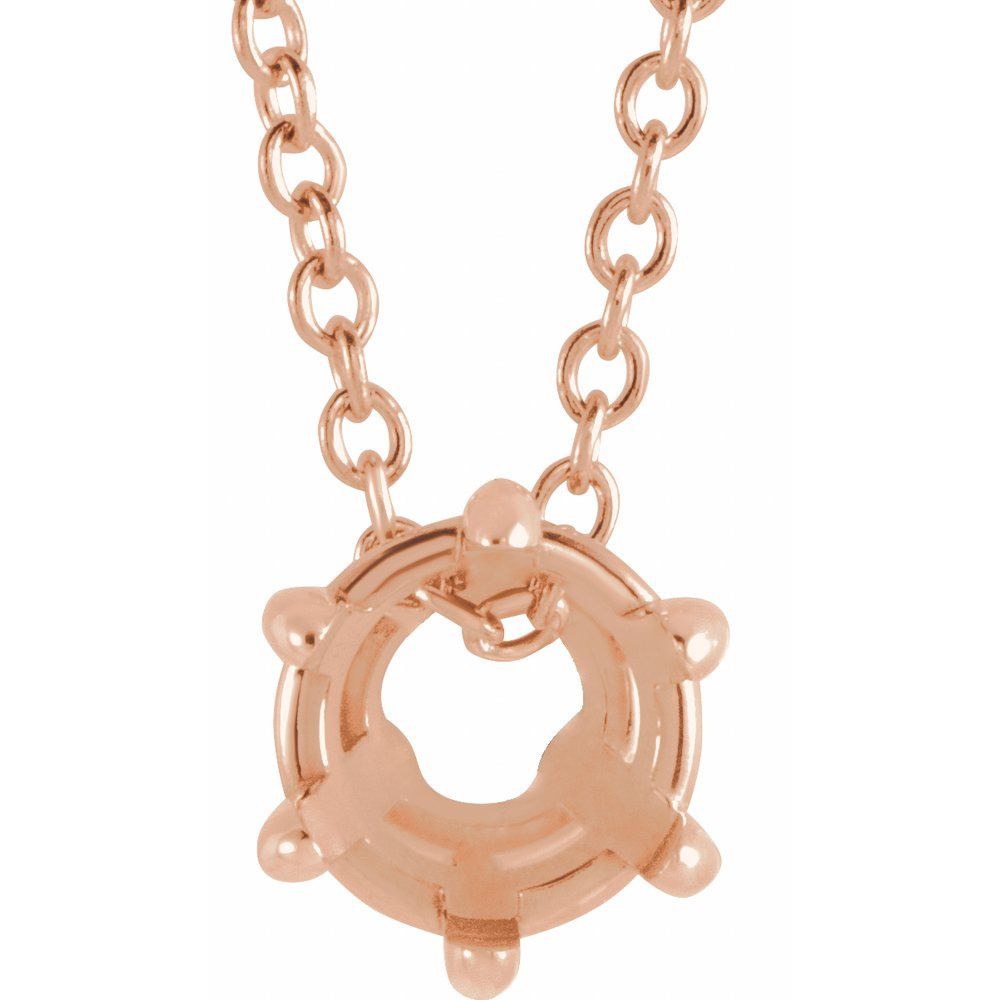 14k Rose Gold 4.5mm Round Shape Solitaire Necklace (6.45x7.3mm, Mounting Only, Not All Stones Included), 16-18"