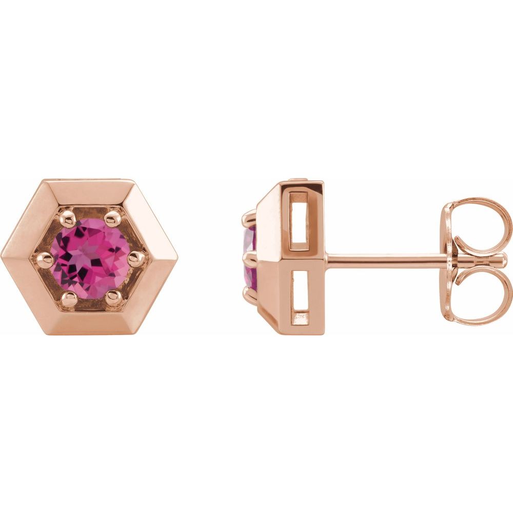 14k Rose Gold Pink Tourmaline Geometric Stud Earrings