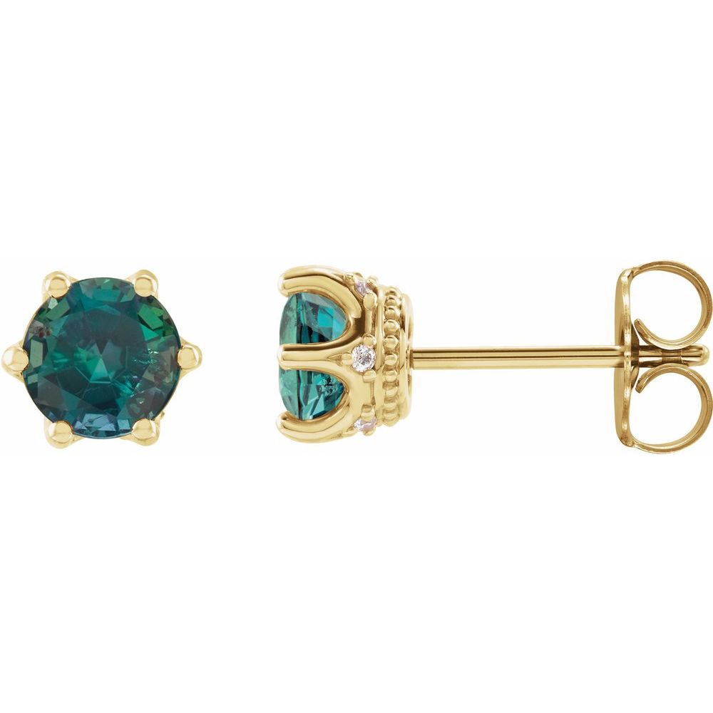 14k Yellow Gold 4mm Round Shape Emerald and 0.03 cttw Diamond Crown Stud Earrings (G-H, I1)
