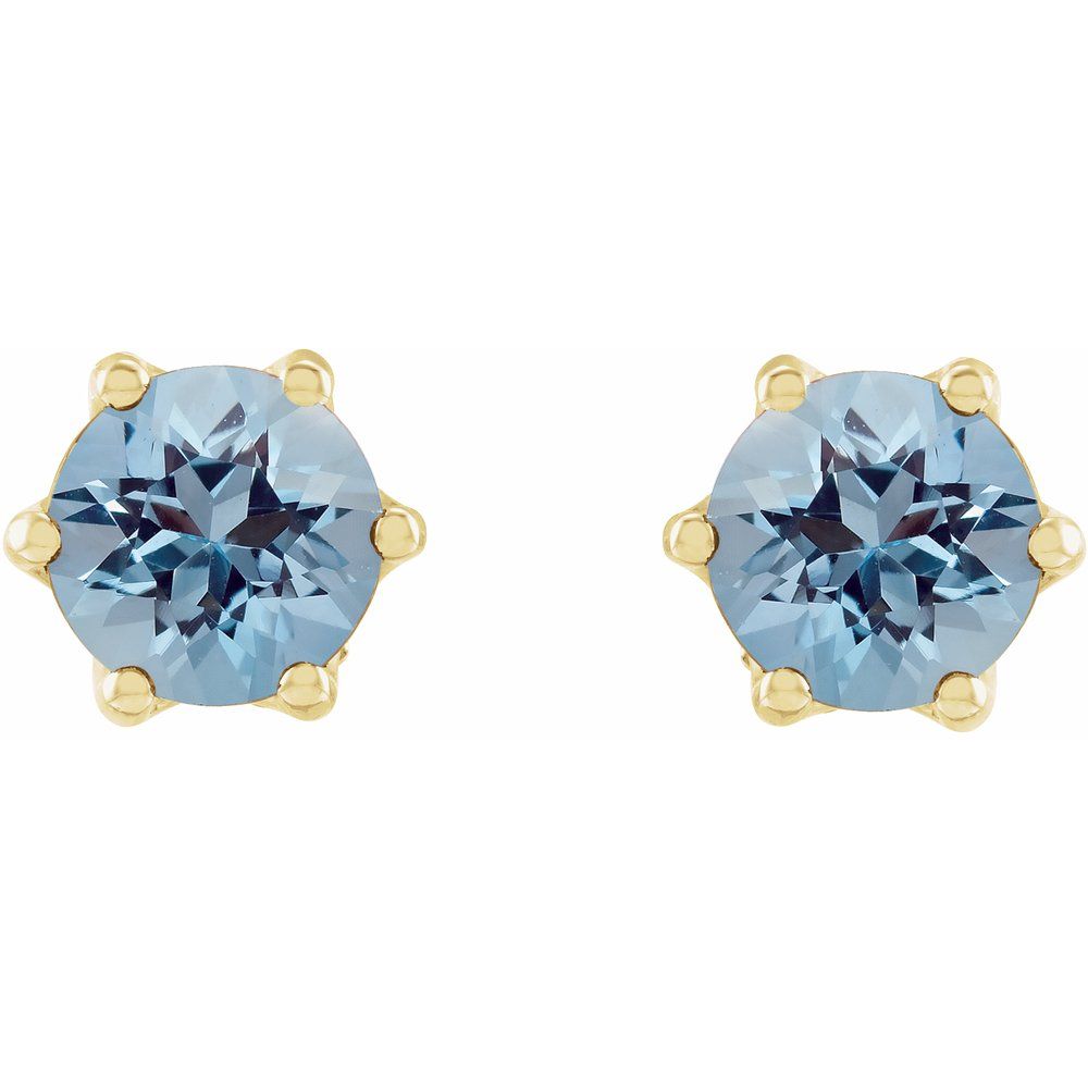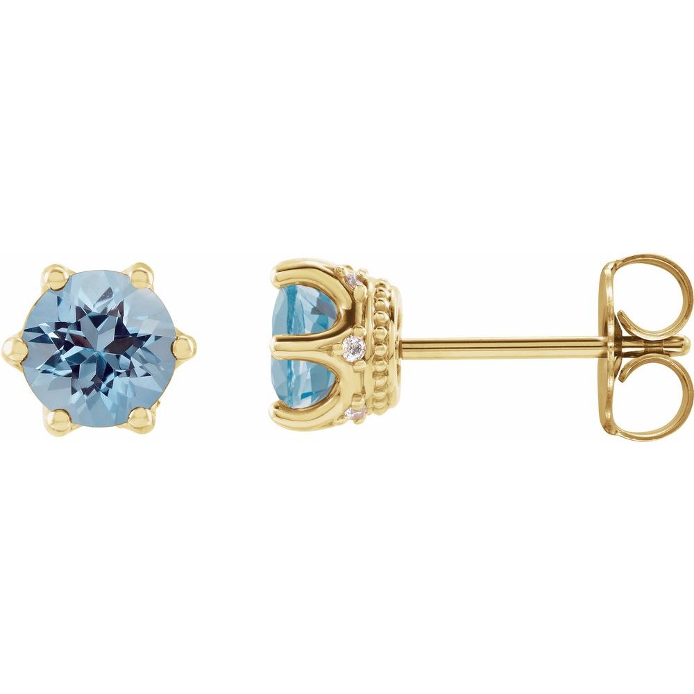 14k Yellow Gold 4mm Aquamarine and 0.03 cttw Diamond Crown Stud Earrings (G-H, I1)
