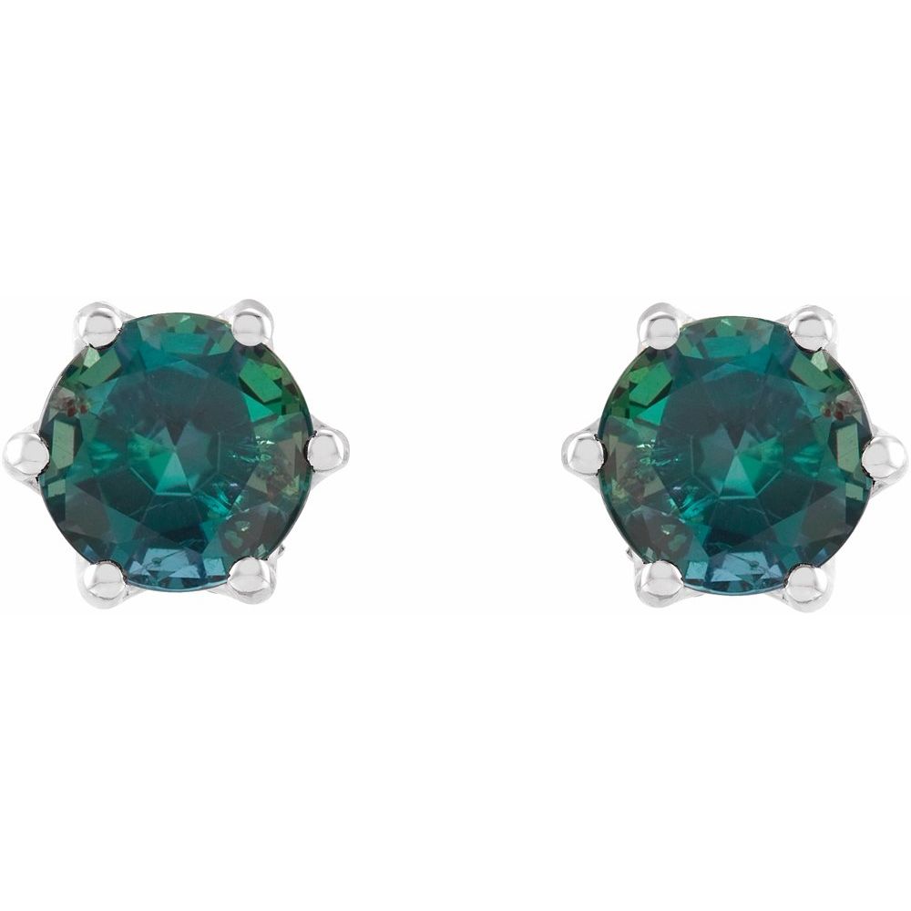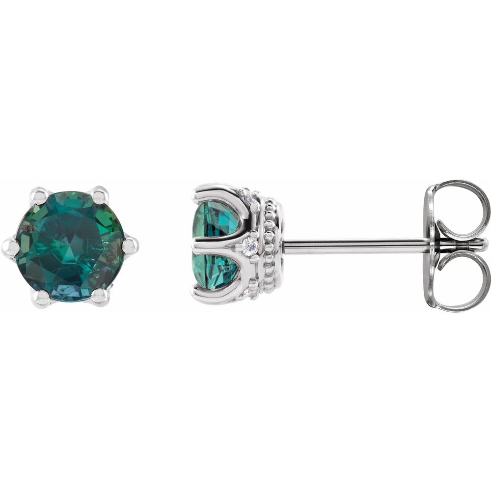 Platinum 6mm Lab-Grown Alexandrite and 0.03 cttw Diamond Crown Stud Earrings (G-H, SI2-SI3)