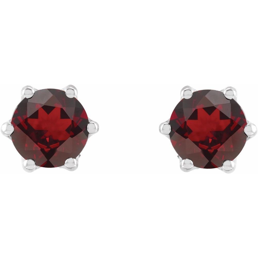14k White Gold 5mm Mozambique Garnet and 0.03 cttw Diamond Crown Stud Earrings (G-H, I1)