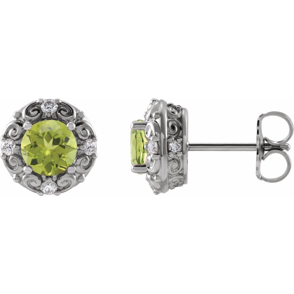 Description: Peridot And 1/10 cttw Diamond Earrings