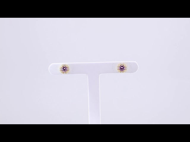 14k Yellow Gold 4mm Round Shape Pink Tourmaline and 1/10 cttw Diamond Halo-Style Stud Earrings (G-H, I1)