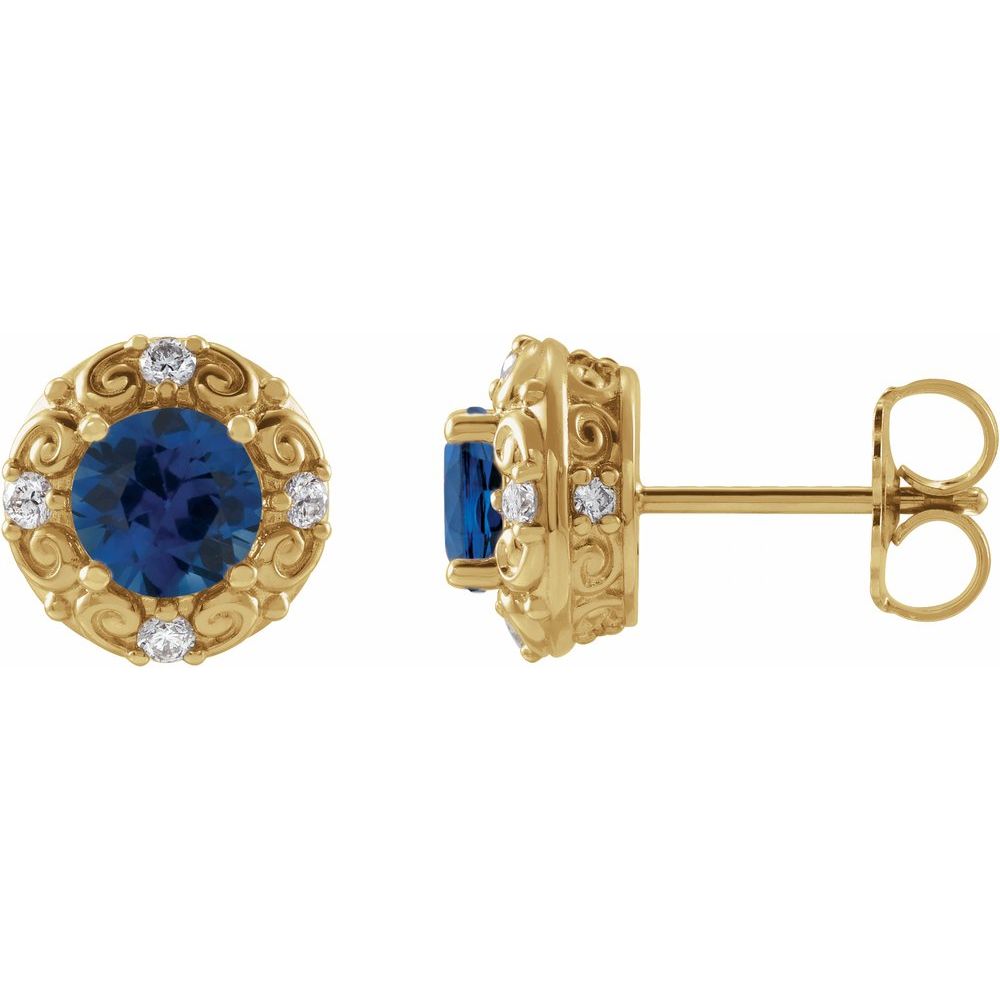 Description: Lab-Created Blue Sapphire And 1/6 cttw Diamond Earrings