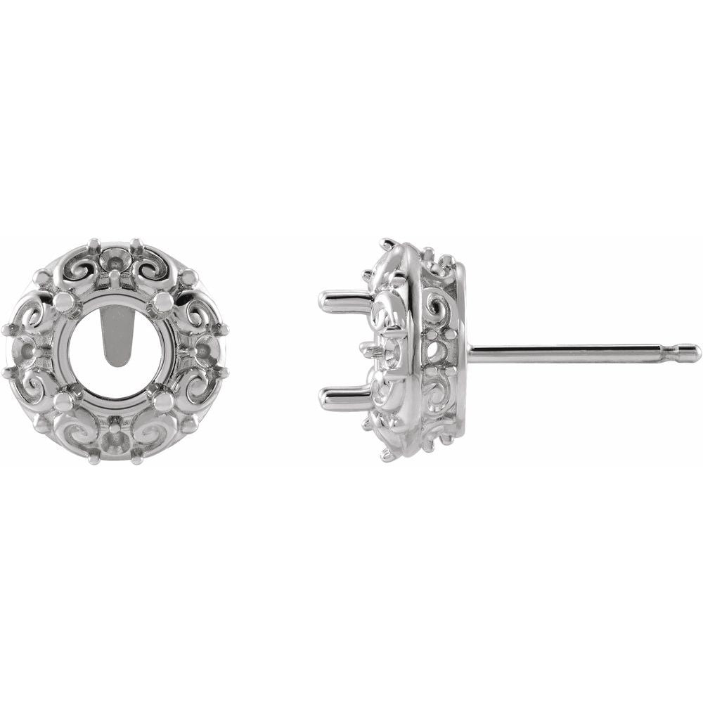 Platinum 5mm Round Shape Halo-Style Earring Mounting (Only One Piece Sold, Not the Pair, Mounting Only, Not All Stones Included)