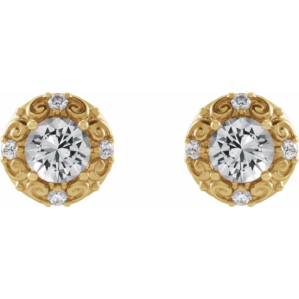14k Yellow Gold 6mm Round Shape White Sapphire and 1/4 cttw Diamond Halo-Style Stud Earrings (G-H, I1)
