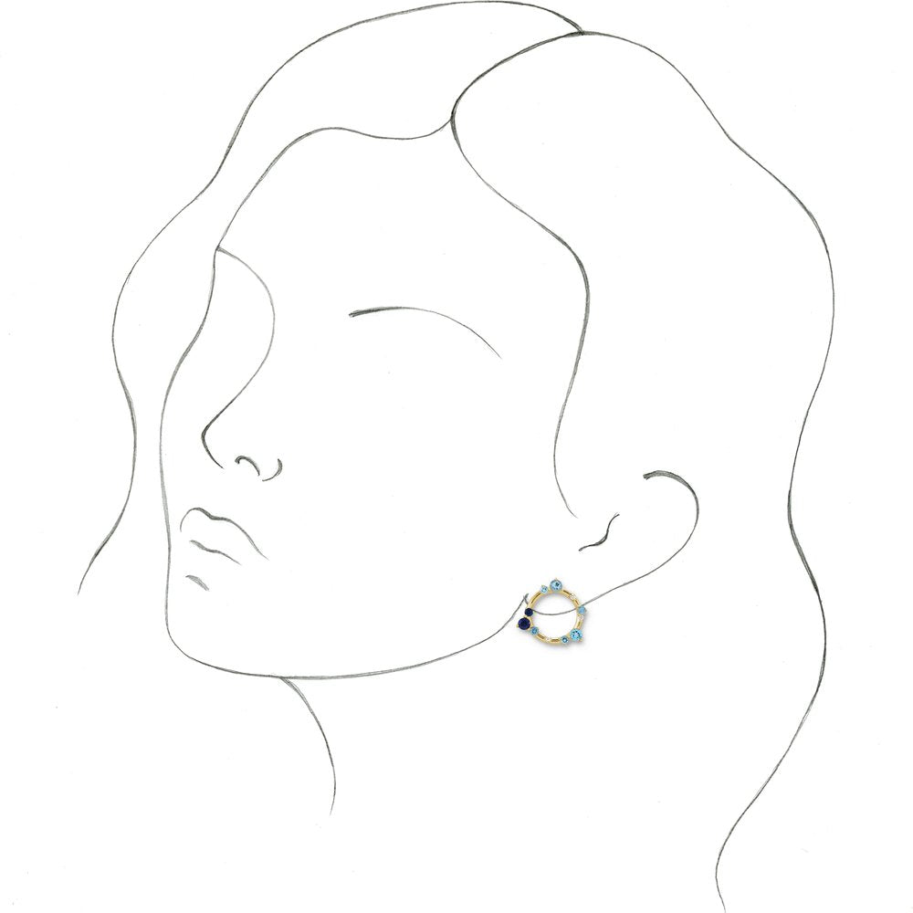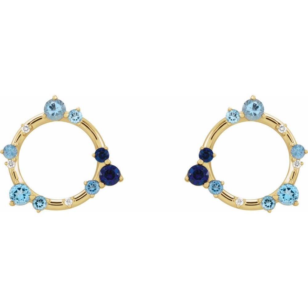 14k Yellow Gold Blue Multi-Gemstone and 0.03 cttw Diamond Circle Drop Dangle Earrings (G-H, I1)