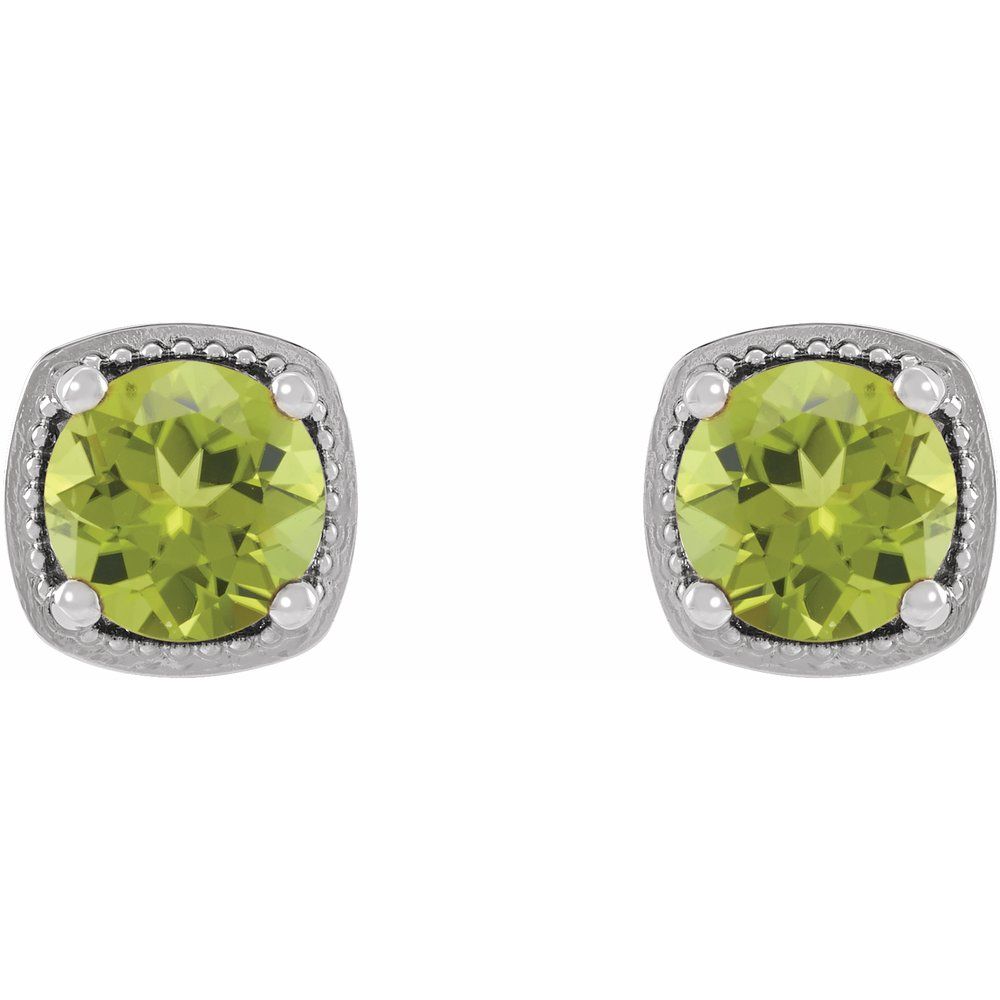 Platinum 4mm Round Shape Peridot Halo-Style Earrings