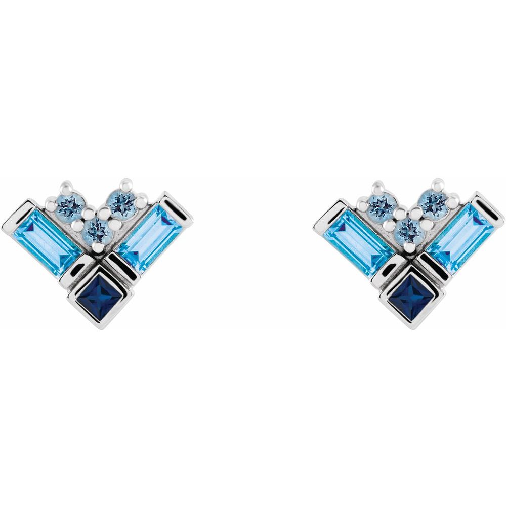 Platinum Blue Multi-Gemstone Cluster Stud Earrings