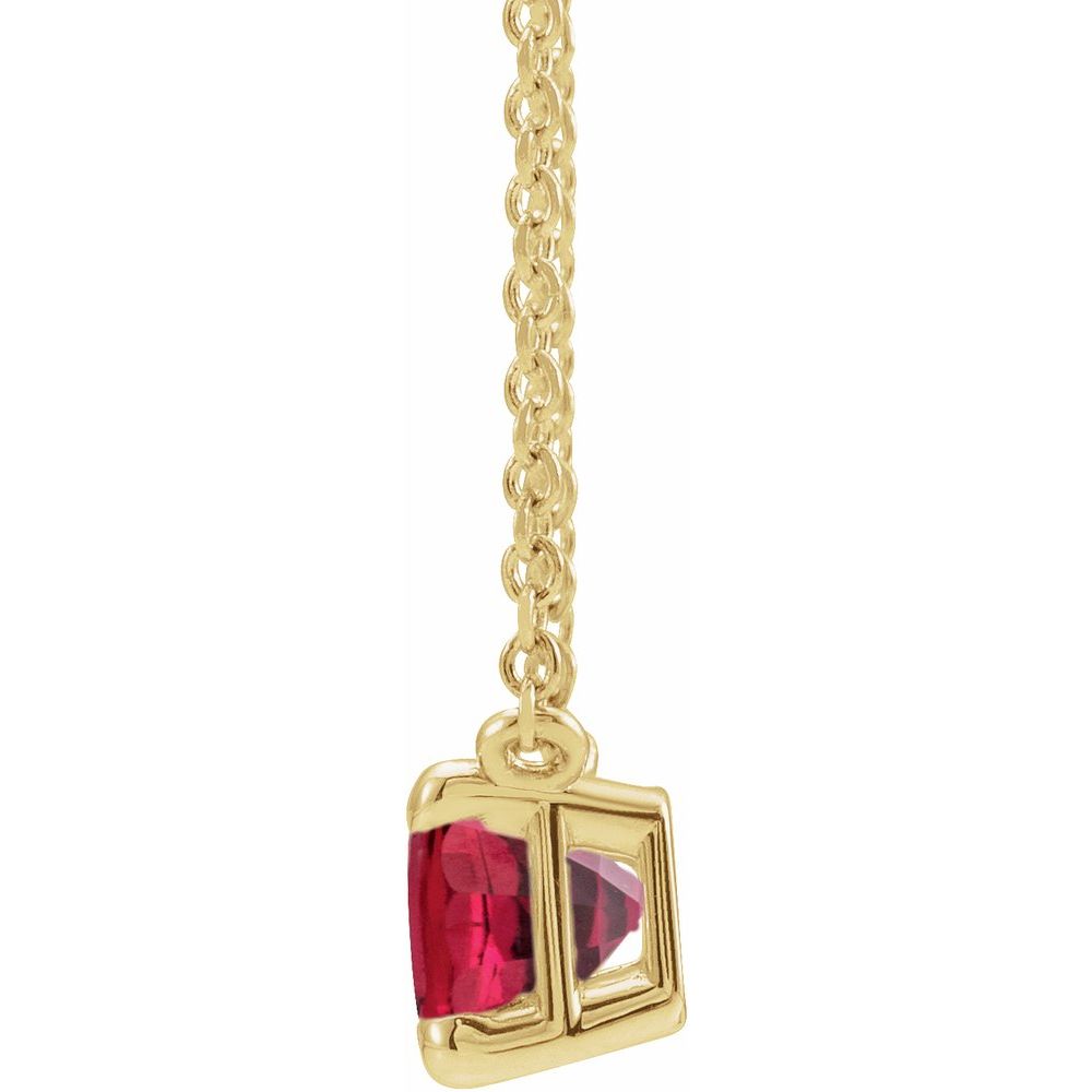 Description: 14k Yellow Gold Lab-Grown Ruby Claw Prong 18" Necklace