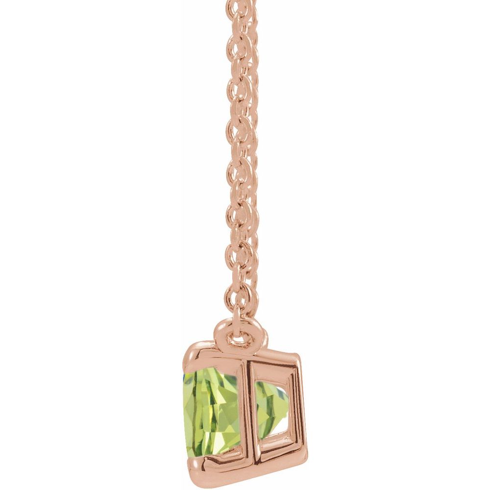 Description: 14k Rose Gold Peridot Claw Prong 18" Necklace