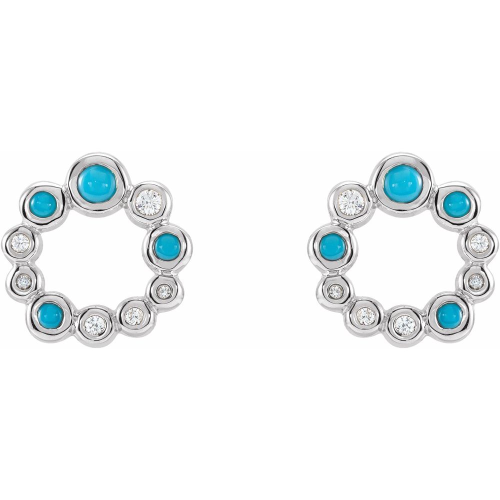 Platinum Turquoise and 1/8 cttw Diamond Cabochon Earrings (G-H, SI2-SI3)