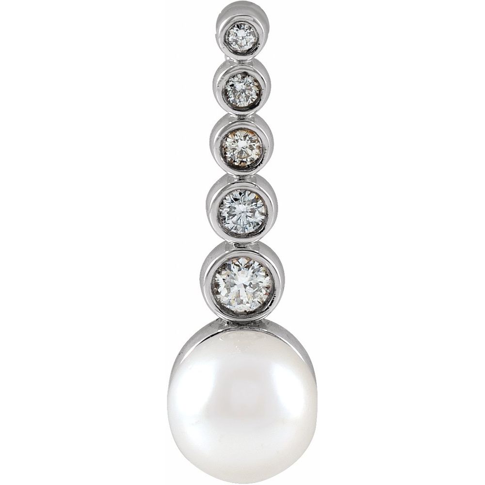 Description: Platinum Cultured Akoya Pearl and 1/8 cttw Diamond Bar Pendant