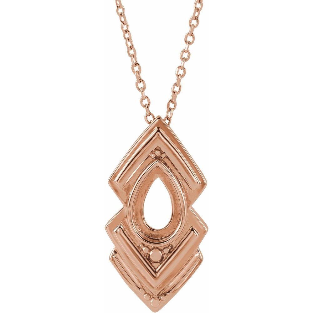 14k Rose Gold 8x5mm Pear Shape Geometric Cabochon Necklace for Approximately 9/10 cttw (21x11.26mm, Mounting Only, Not All Stones Included), 16-18"