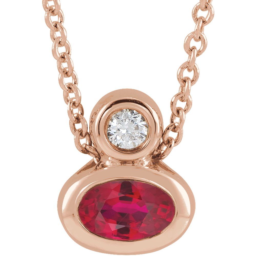 14k Rose Gold 5x3mm Oval Shape Ruby and .03 cttw Diamond Necklace (8.41x6.89mm, G-H, I1), 16-18"