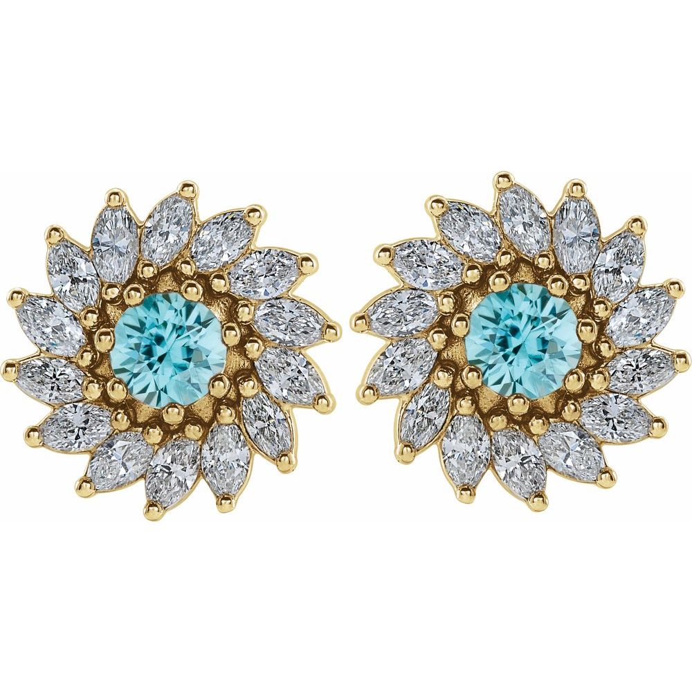 14k Yellow Gold 4mm Round Shape Blue Zircon and 7/8 cttw Diamond Halo-Style Earrings (G-I, I1)