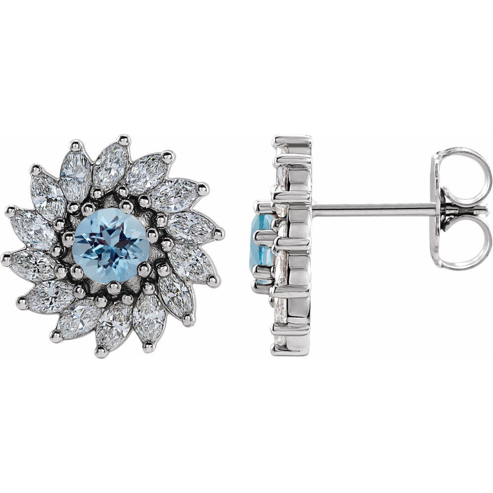 Description: Aquamarine And 7/8 cttw Diamond Earrings