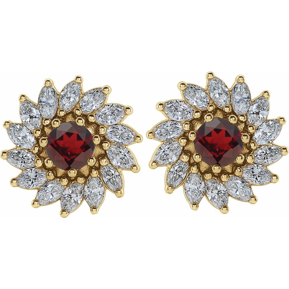 14k Yellow Gold 6mm Round Shape Mozambique Garnet and 2 1/5 cttw Diamond Halo-Style Earrings (G-I, I1)