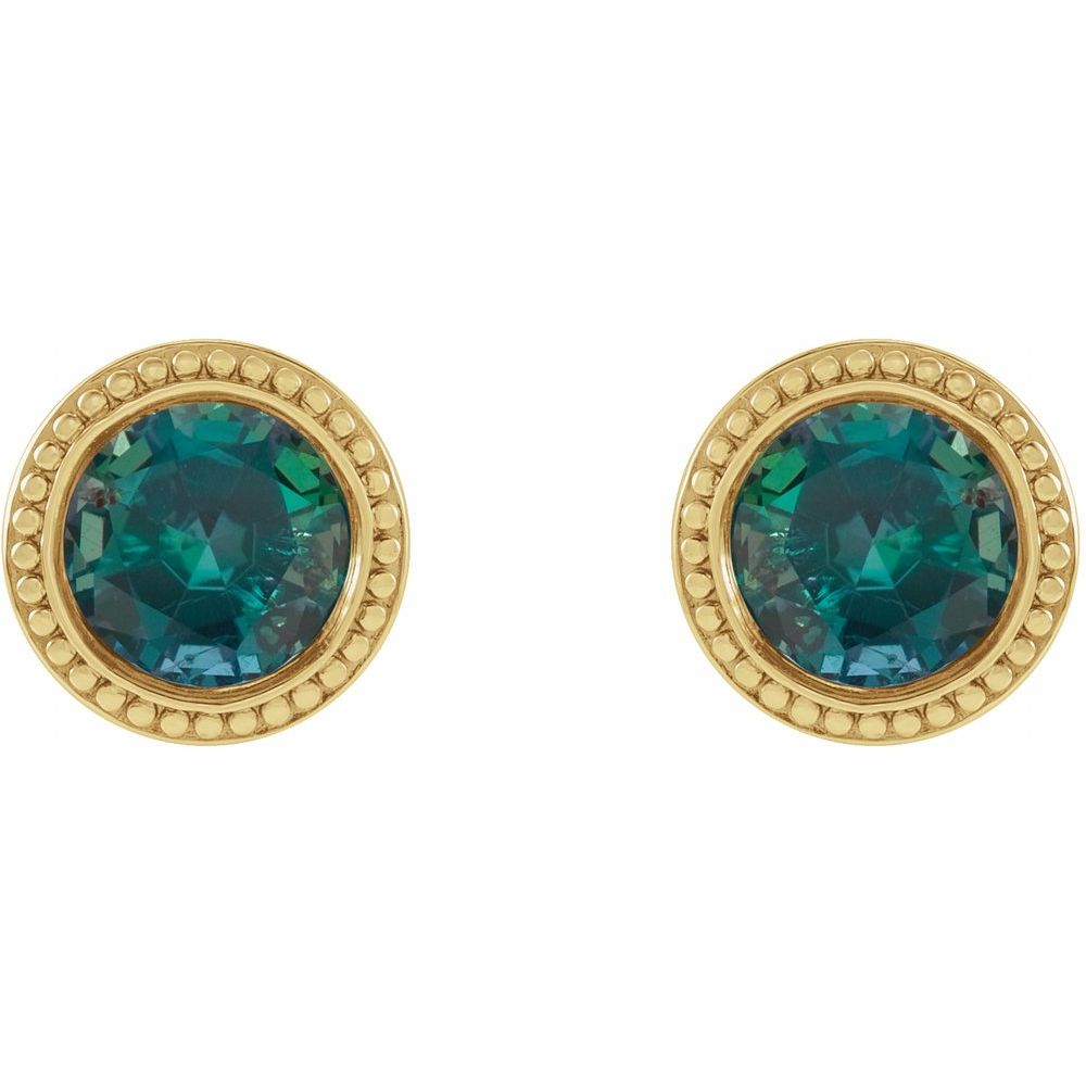 14k Yellow Gold 4mm Round Shape Lab-Grown Alexandrite Beaded Bezel-Set Stud Earrings