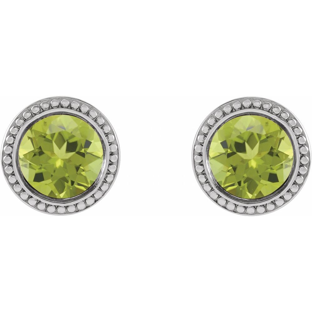 Sterling Silver 6mm Round Shape Peridot Beaded Bezel-Set Stud Earrings