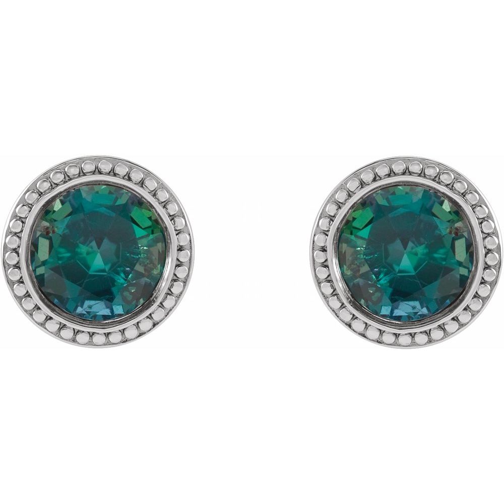 Sterling Silver 6mm Round Shape Lab-Grown Alexandrite Beaded Bezel-Set Stud Earrings