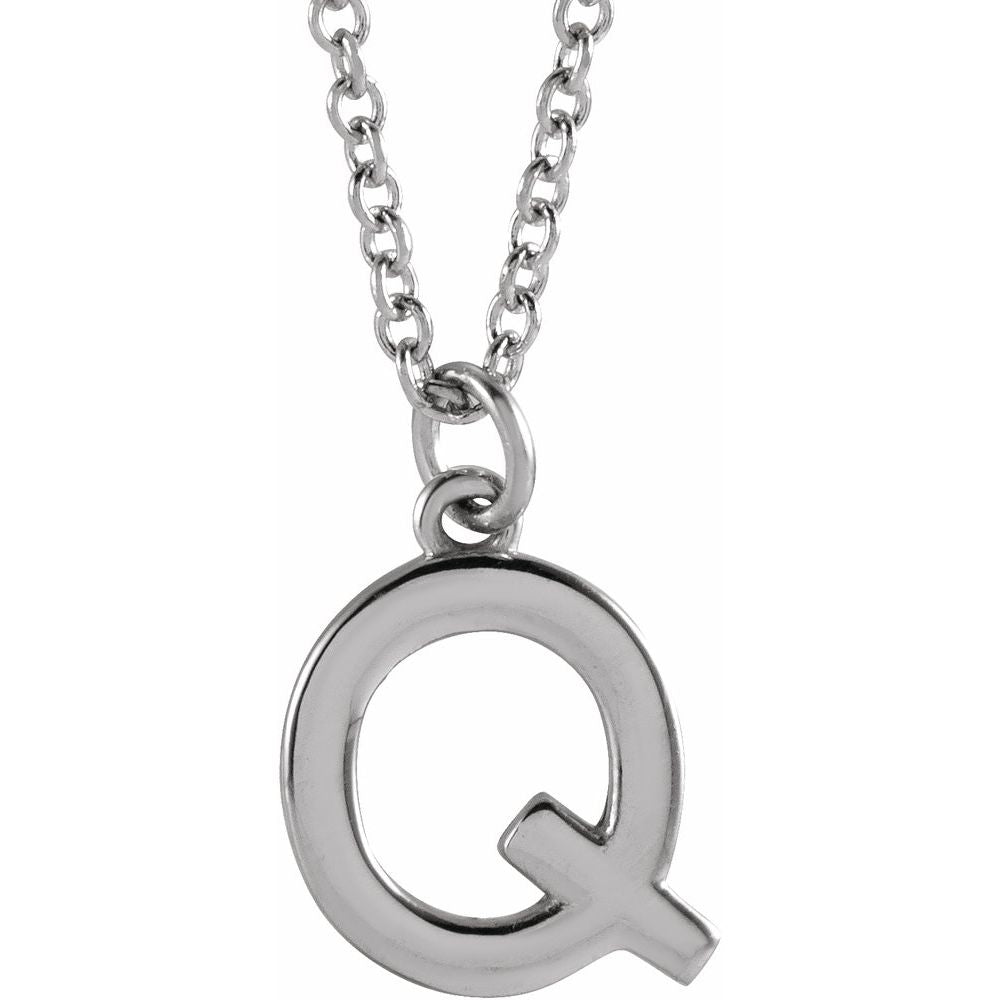 Sterling Silver Initial Q Dangle Necklace (9.6x7.8mm), 16"