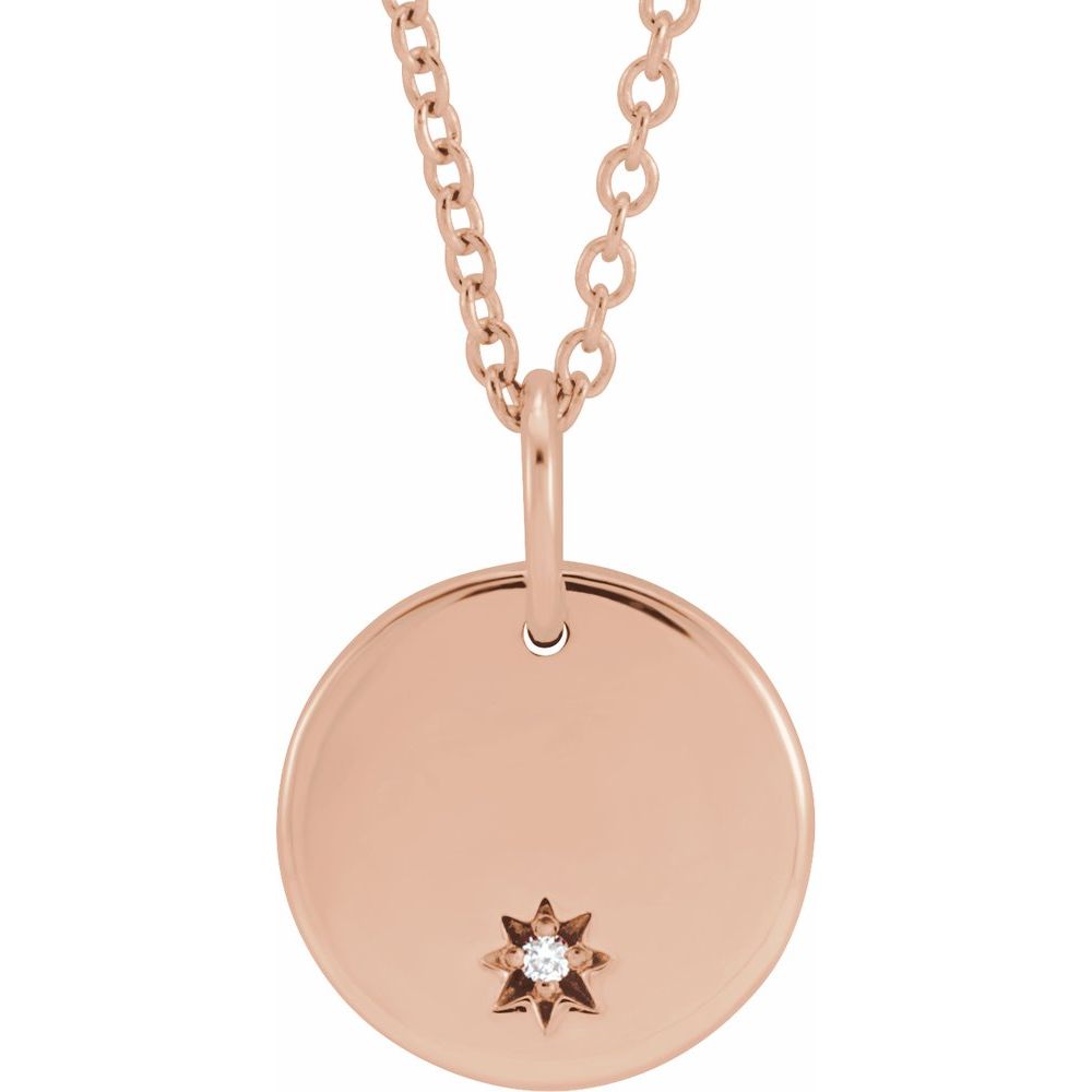14k Rose Gold Diamond Round Shape Personalized Necklace (10x1mm, .005 cttw, G-H, I1), 16-18"