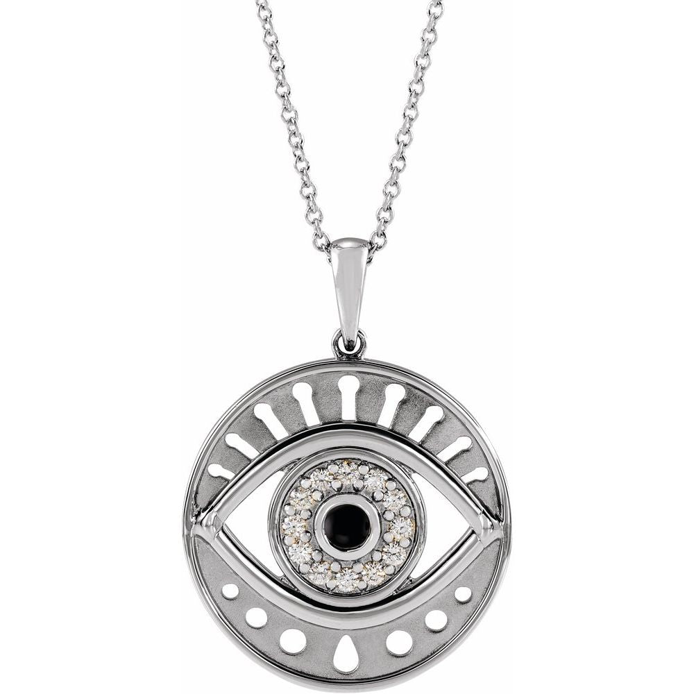 Description: Platinum Onyx and 1/6 cttw Diamond Evil Eye 16-18" Necklace