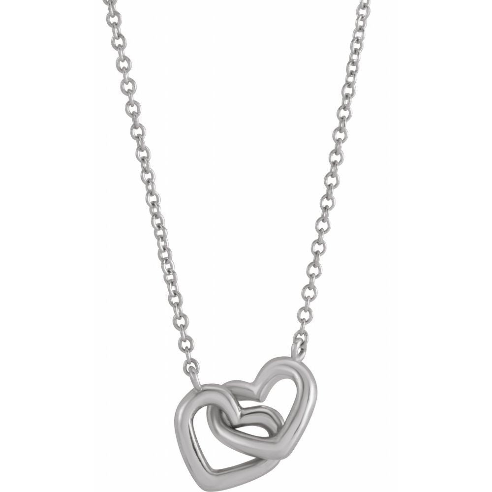 Sterling Silver Interlocking Heart Shape Necklace (9.22x7.93mm), 18"