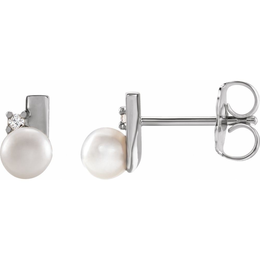 Description: White Akoya Pearl And .03 cttw Diamond Geometric Earrings