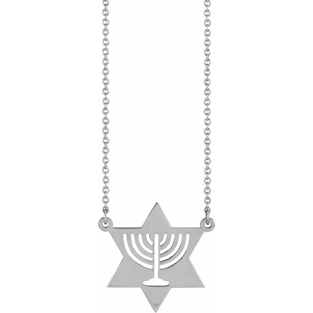 14k White Gold Jewish Menorah Star Religious Necklace (18.9x18.9mm), 18"