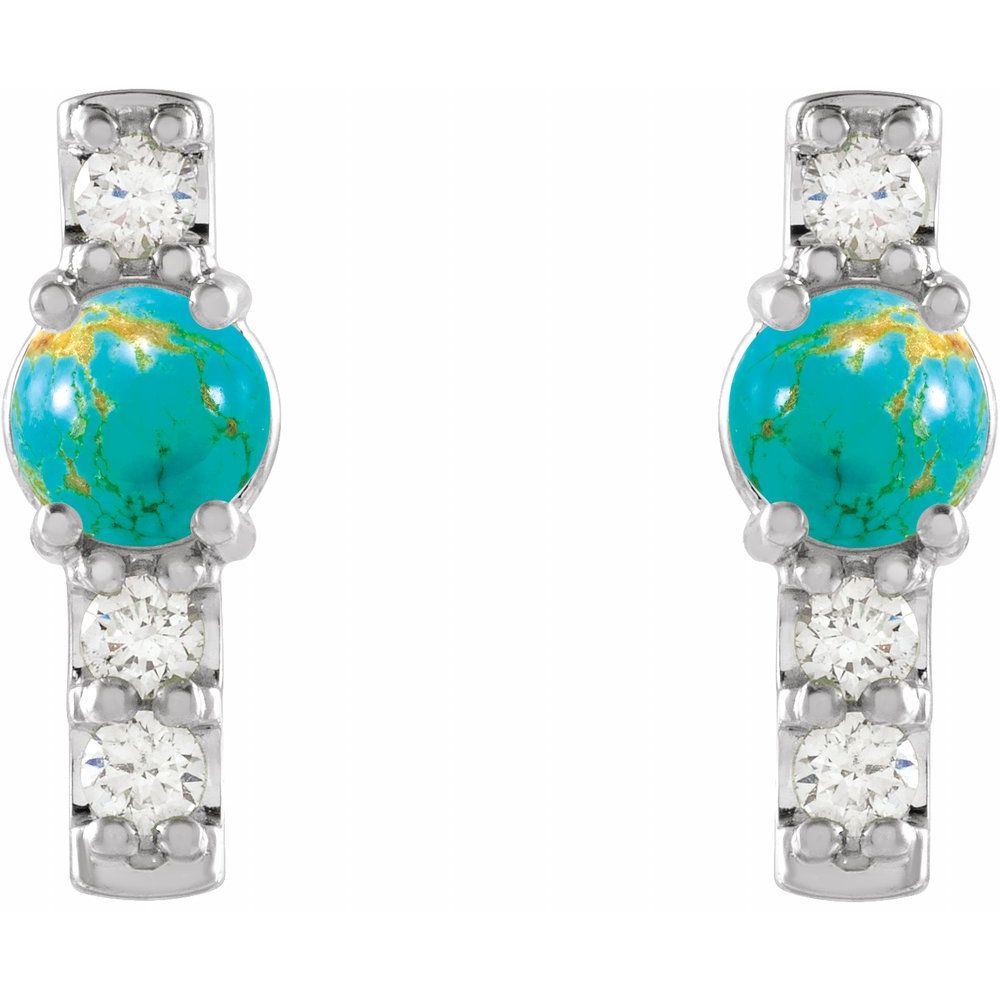 Description: Turquoise And 1/5 cttw Diamond Cabochon Bar Earrings