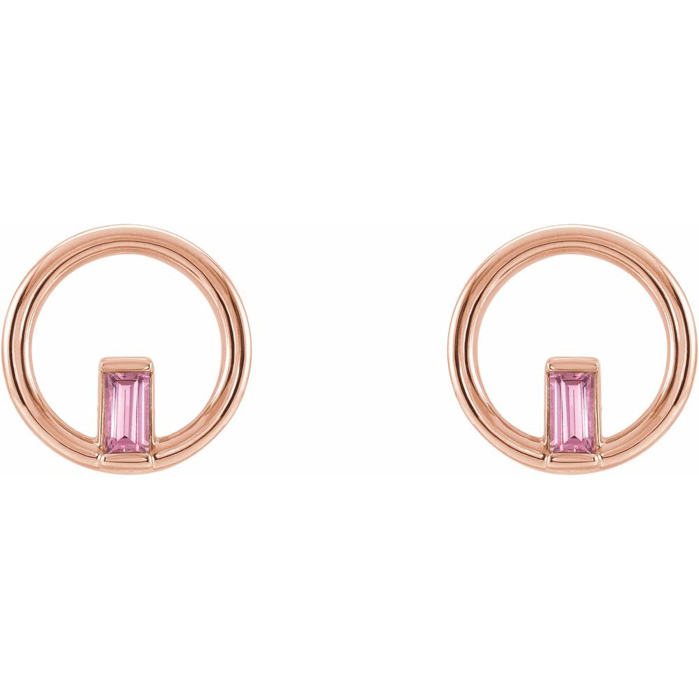 14k Rose Gold Pink Tourmaline Baguette Shape Circle Stud Earrings