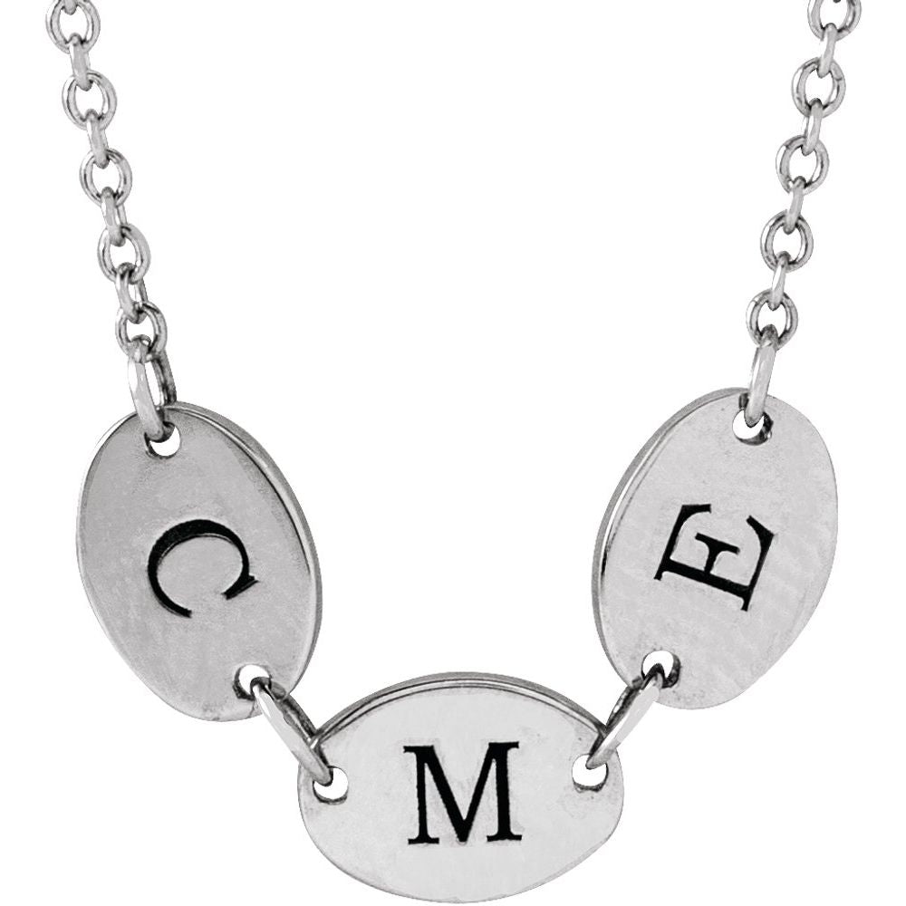 Platinum 3-Disc Engraveable Disc Family Personalized Necklace (7x5mm), 18"