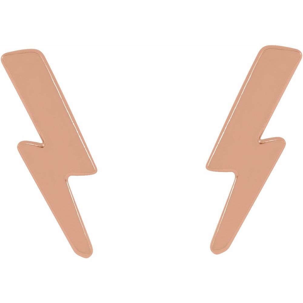 14k Rose Gold Tiny Lightning Bolt Stud Earrings