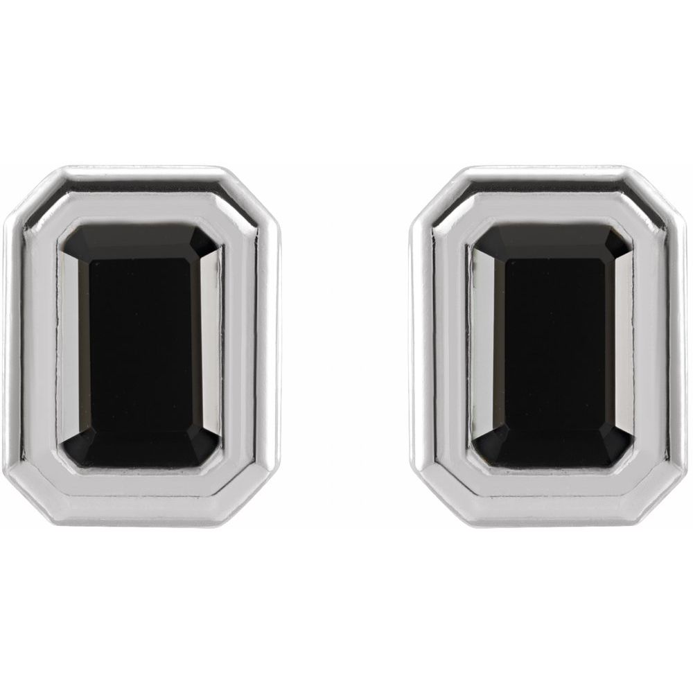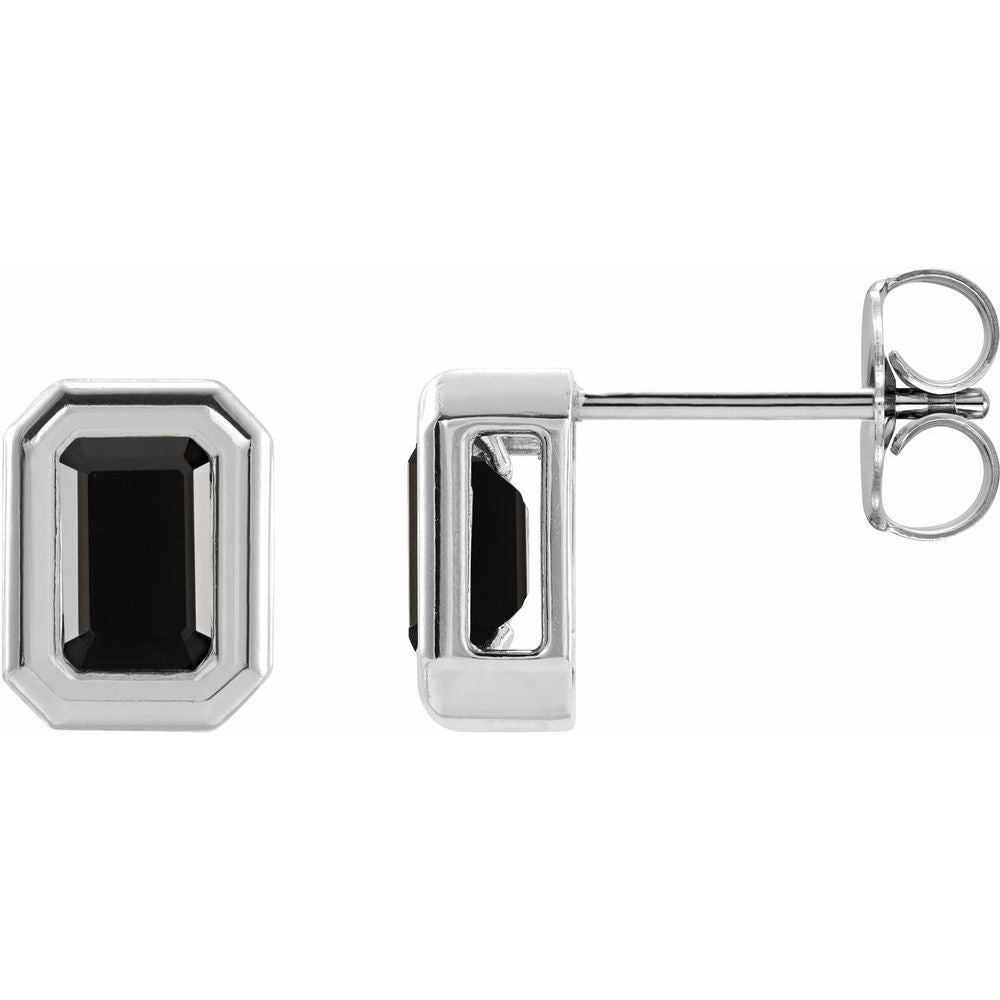 Platinum Black Onyx Bezel-Set Stud Earrings