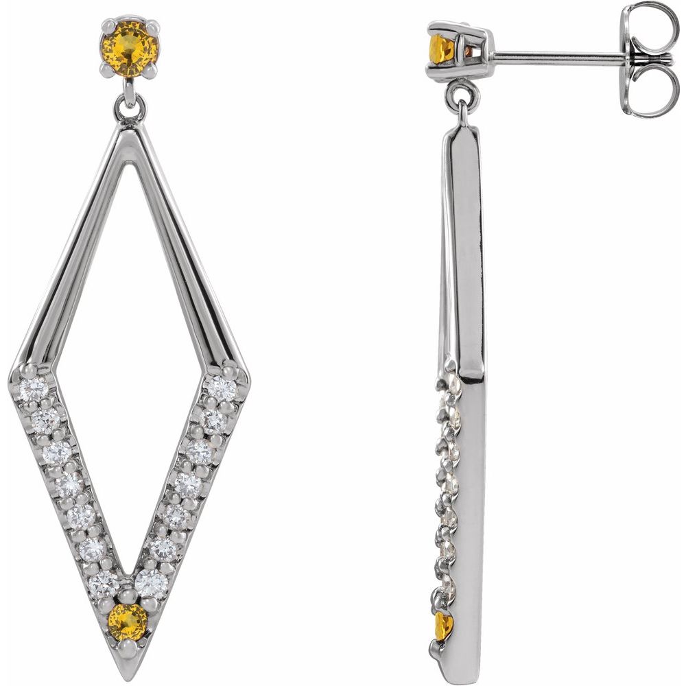 Description: Yellow Sapphire And 1/2 cttw Diamond Geometric Dangle Earrings