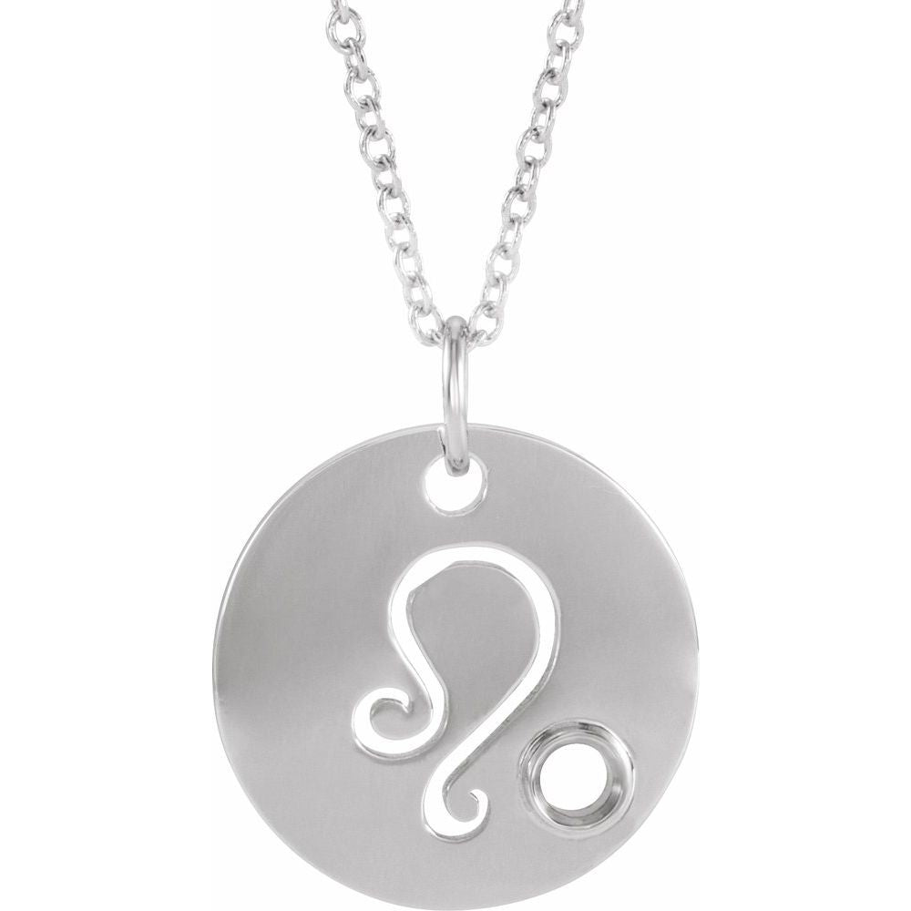 Platinum 2.5mm Round Shape Leo Zodiac Disc Necklace (16.7x13.8mm, Mounting Only, Not All Stones Included), 16-18"