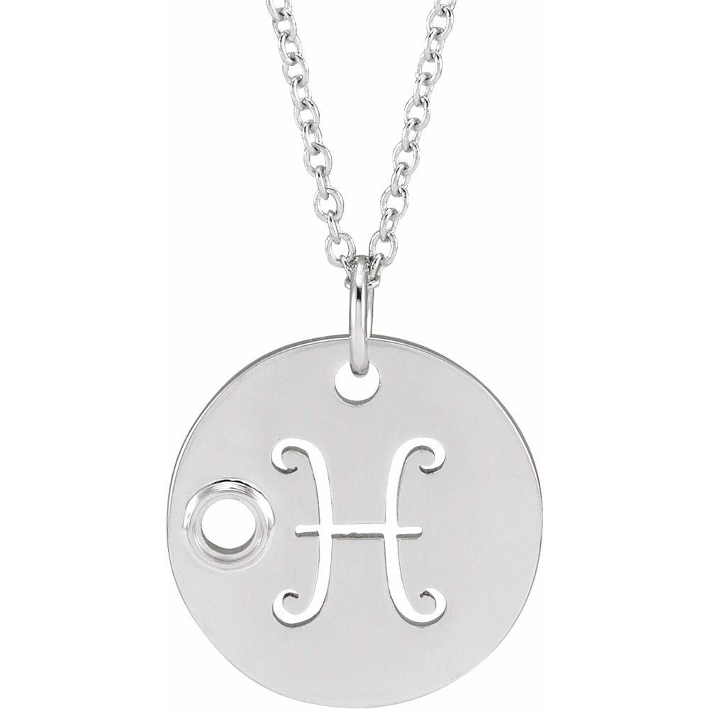 Description: Platinum 2.5mm Round Pisces Zodiac Disc 16-18" Necklace Mounting