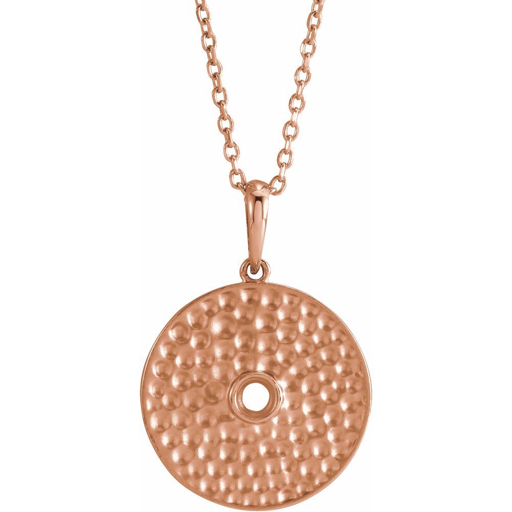 14k Rose Gold Round Shape Beaded Disc Solitaire Necklace for Approximately 0.06 cttw (21.94x15.07mm, Mounting Only, Not All Stones Included), 16-18"
