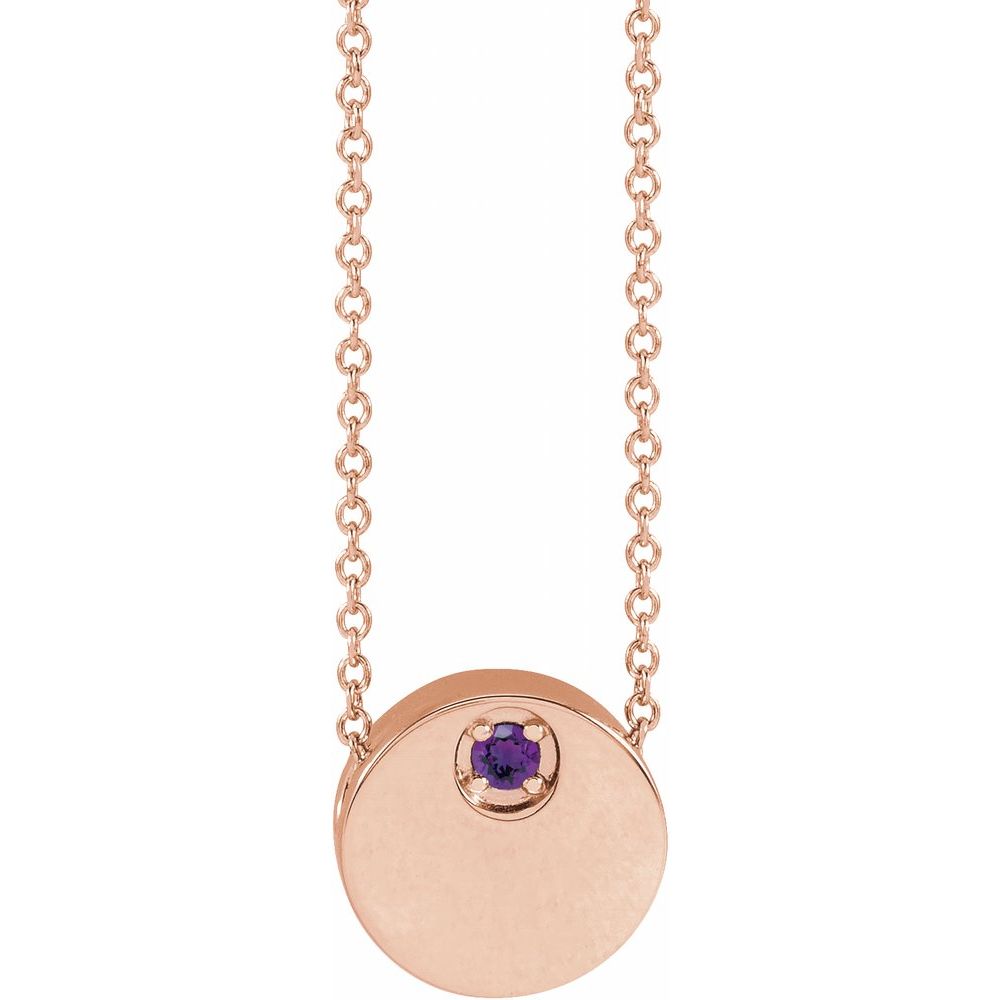 14k Rose Gold Round Shape Amethyst Disc Necklace (1mm), 16-18"