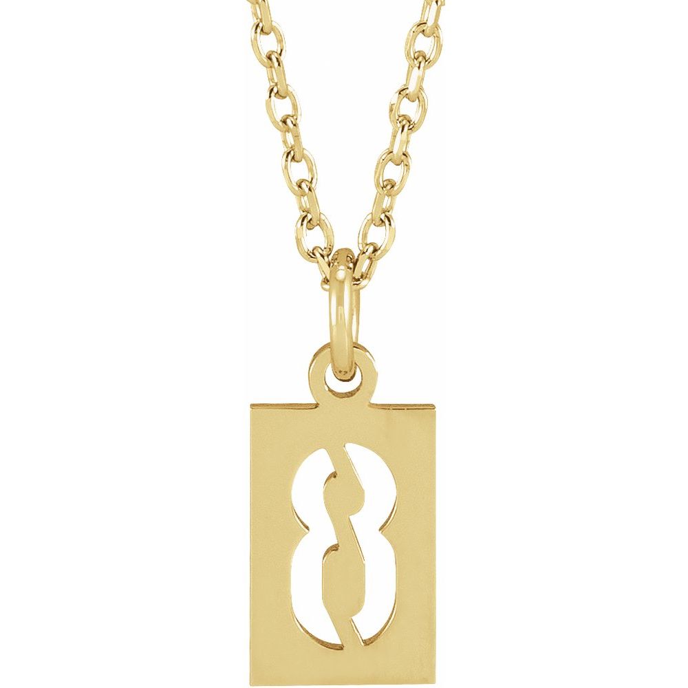 14k Yellow Gold Pierced Numeral 8 Dog Tag Necklace (12.41x5.32mm), 16-18"