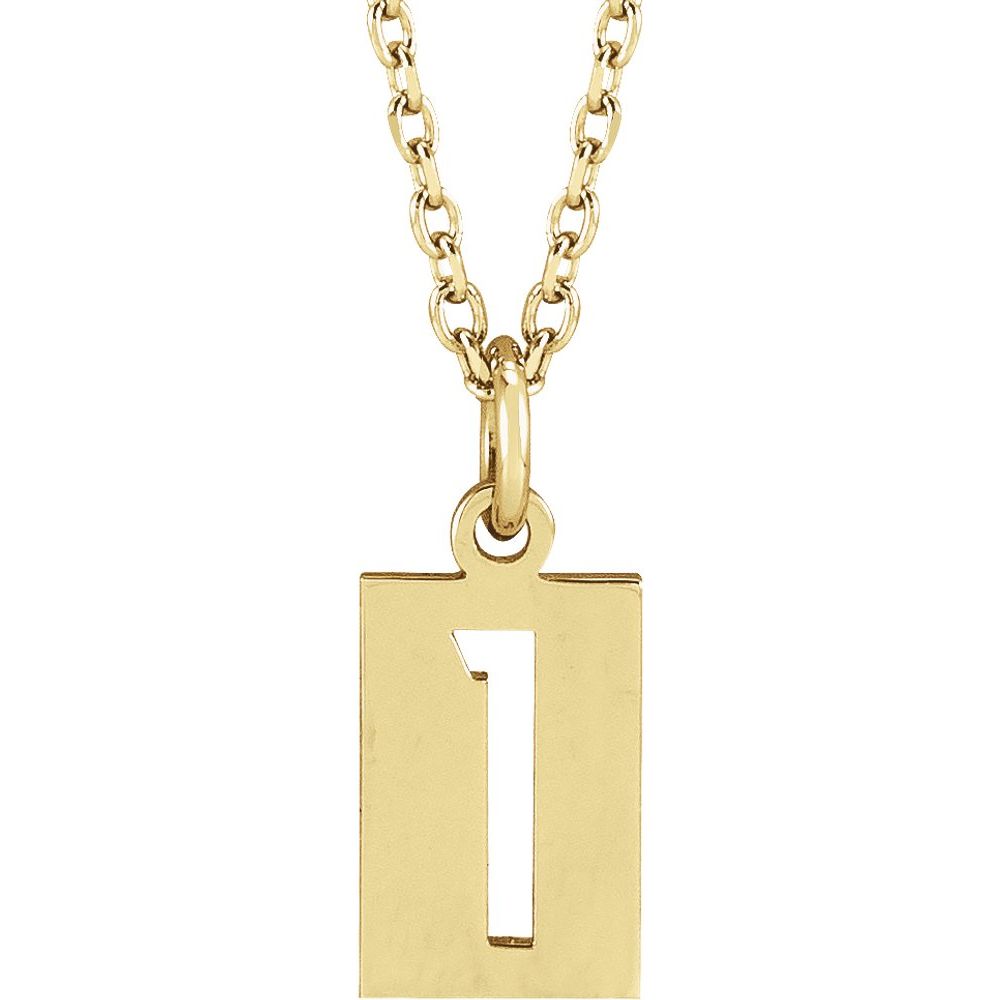 14k Yellow Gold Pierced Numeral 1 Dog Tag Necklace (12.41x5.32mm), 16-18"