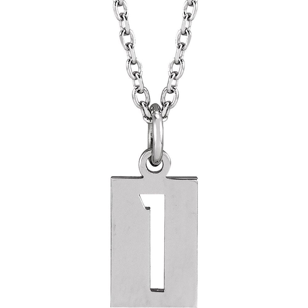 Platinum Pierced Numeral 1 Dog Tag Necklace (12.41x5.32mm), 16-18"