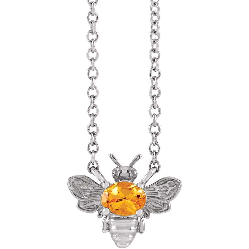 Sterling Silver Oval Shape Orange Garnet Bee Necklace (10.38x8.6mm), 18"
