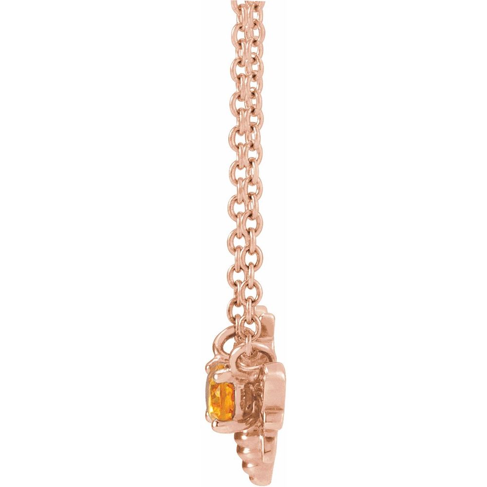 Description: 14k Rose Gold Orange Garnet Bee 18" Necklace