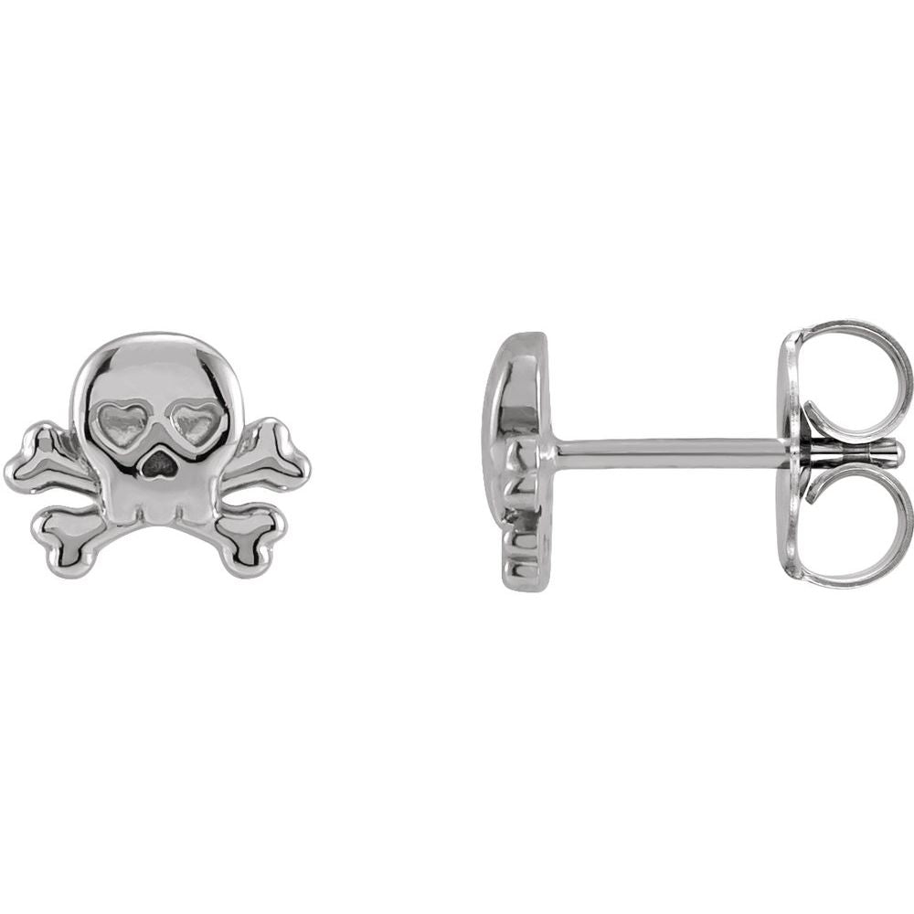 Sterling Silver Petite Skull and Crossbones Stud Earrings
