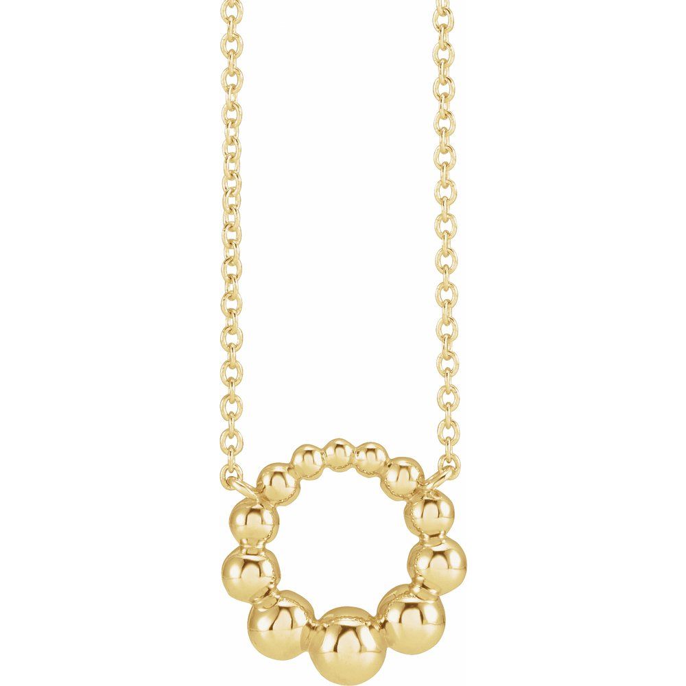 14k Yellow Gold Beaded Circle Necklace (12x12mm), 16"