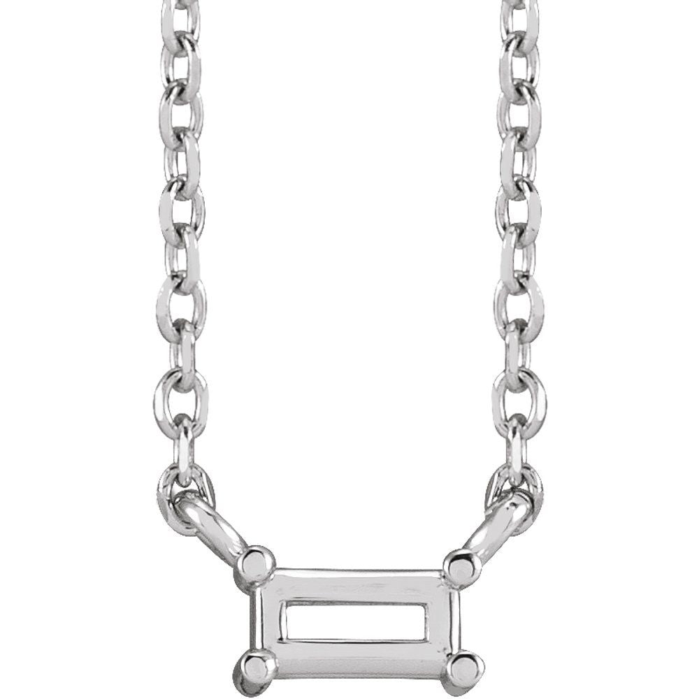 Platinum 4x2mm Straight Baguette Shape Solitaire Necklace for Approximately 1/8 cttw (7.15x3.95mm, Mounting Only, Not All Stones Included), 16"